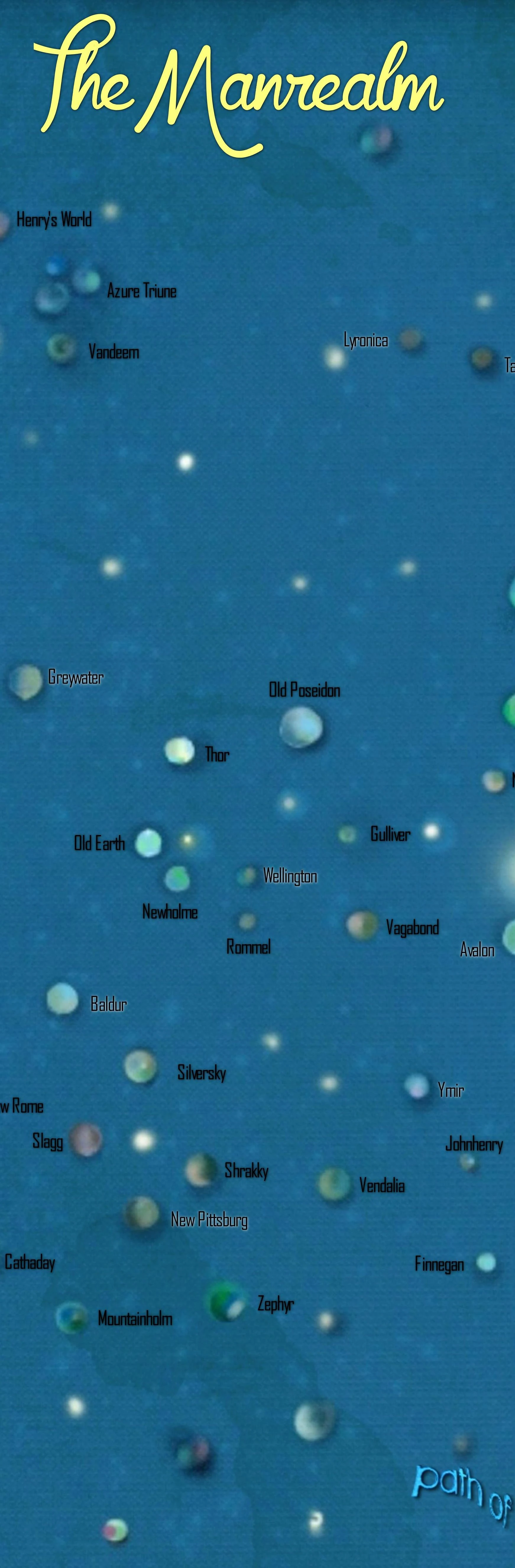 Starmap of the Manrealm by caffeine2 from DeviantArt (planets where stories take place are marked in red)